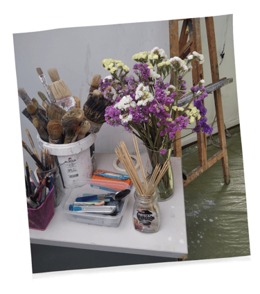 Las sesiones integran dibujo y pintura, y combinan práctica, experimentación y referencias a artistas e historia del arte que surgen de forma natural durante la clase. El objetivo es que cada participante encuentre su propia manera de crear, sin rigidez y sin presión.